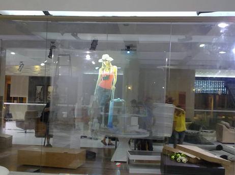 | Explanation£º easy-to-install glass by water, clear rear projection screen film(self adhesive glass OPTICAL film apply to fashion shop) the film is lasting performance. clear rear projection screen film(self adhesive glass OPTICAL film apply to fashion shop) perfect for shop window advertising. Easy to install by water. its advantage is clear transparency, you will not notice its exsiting when projection is stopped 3D film for Holographic screen(max width 1.52M) eye-catcher, transparent foilany kind of projector is ok with our film, usually 3000lumnes enough projector => foil => glass => viewer Product features USE: The foil is adhesive rear projection film, you take off its protective layer, so the projection film can be stuck directly to acrylic or glass