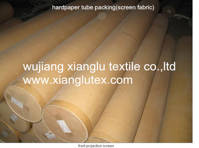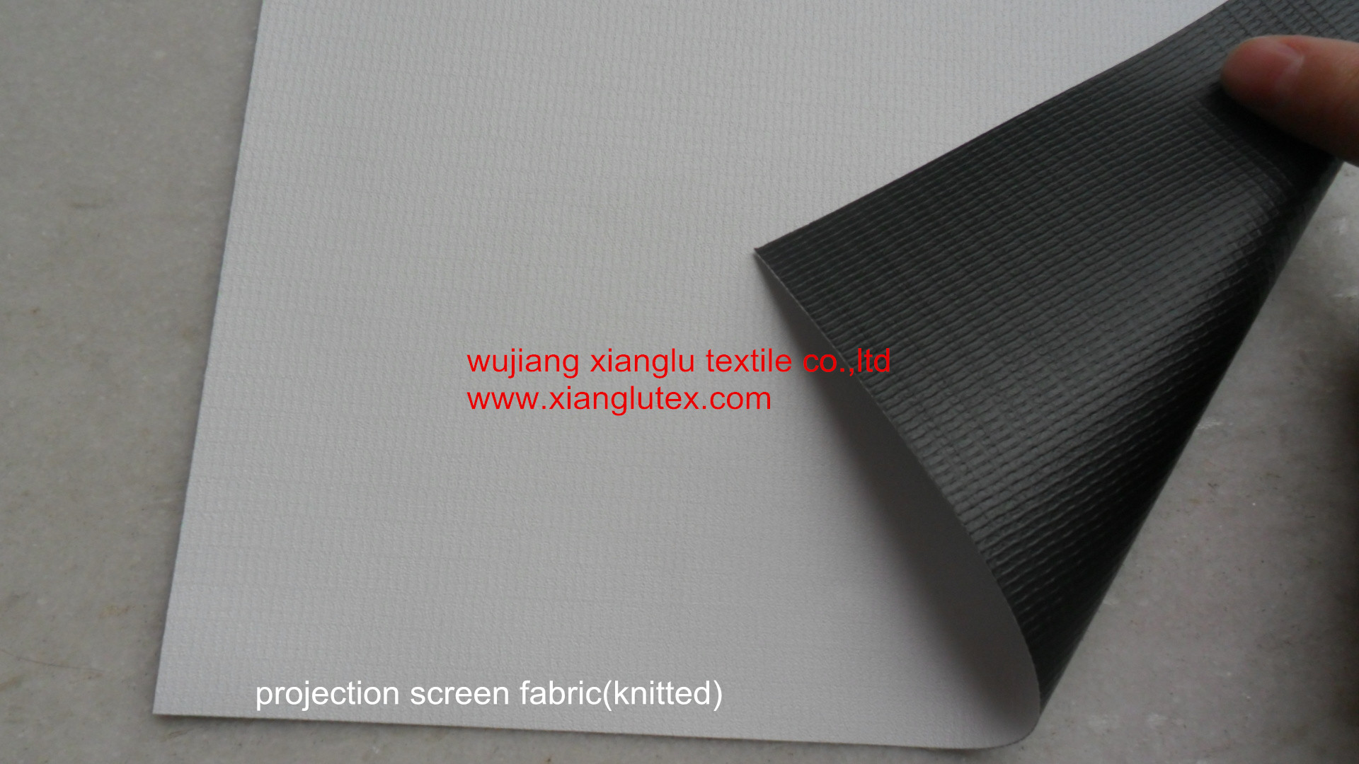 | Explanation£º front projection screen surface(knitted) color:pure white front side, black color rear side. width:1.85m to 3.2m thickness:0.38mm we are professional projection screen fabric producer over 10years warp knited front projection screen fabric(low price material) Structure: PVC film + Warp knitting + PVC film used for motorized screen, manual screen,tripod screen projection screen for meeting, teaching, exhibition display and so on